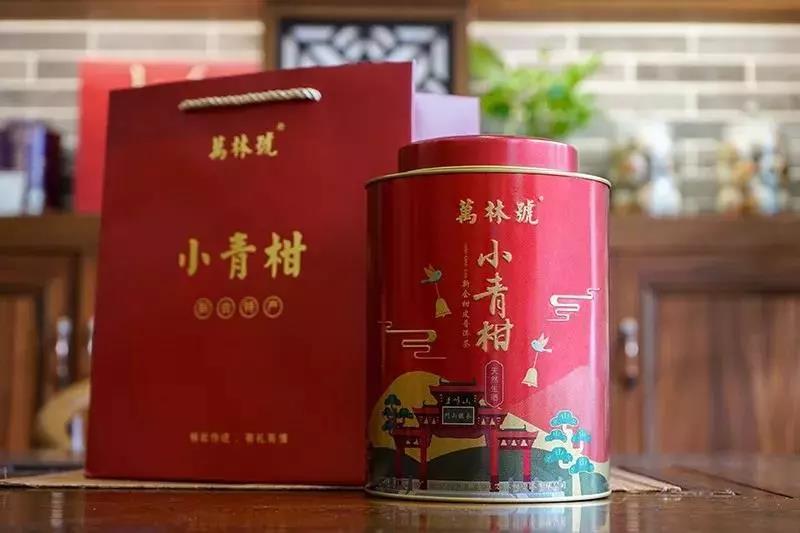 萬林號的一套陳香口味的200克裝的童趣新會印象禮罐包裝,插畫描繪出 新會風景-圭峰山以及小鳥天堂的一派生機映像。使用磨砂打凸的工藝使整個禮罐立體感更為生動形象。祥華紅艷、淡綠悠然。小青柑的嬌小之氣,小青柑的源頭風貌,盡顯之中。